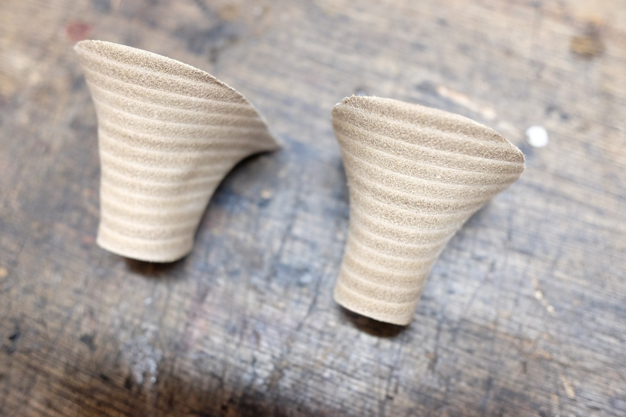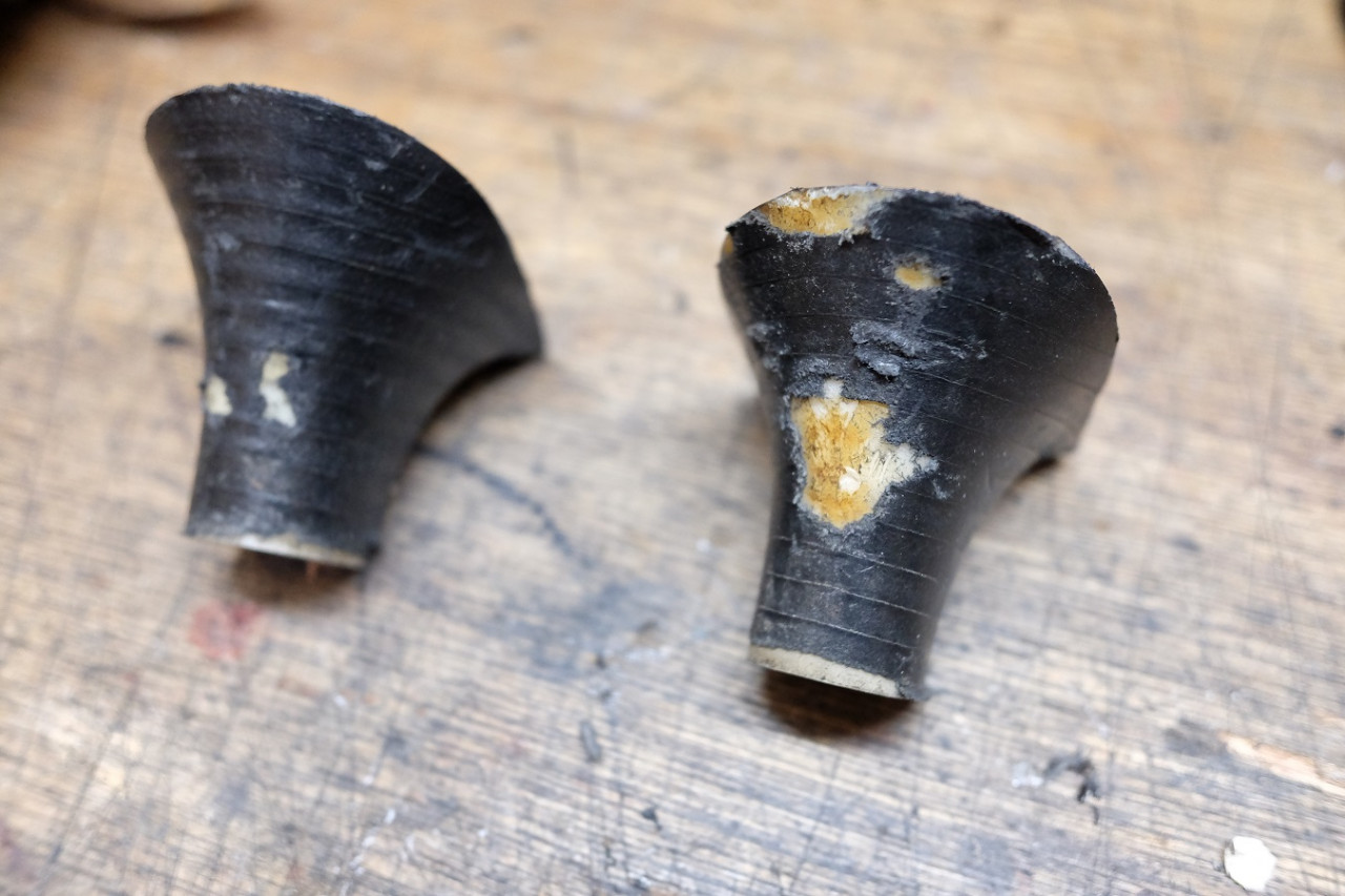 革の種類もたくさんありますが、今回はスタック革と呼ばれるヒールの巻き革交換の修理事例をご紹介いたします。