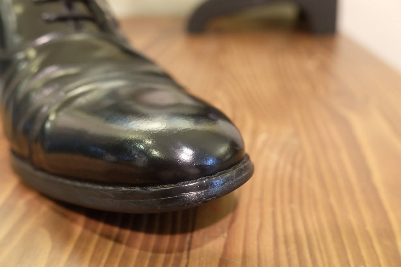 紳士革靴のつま先にできたキズを修復