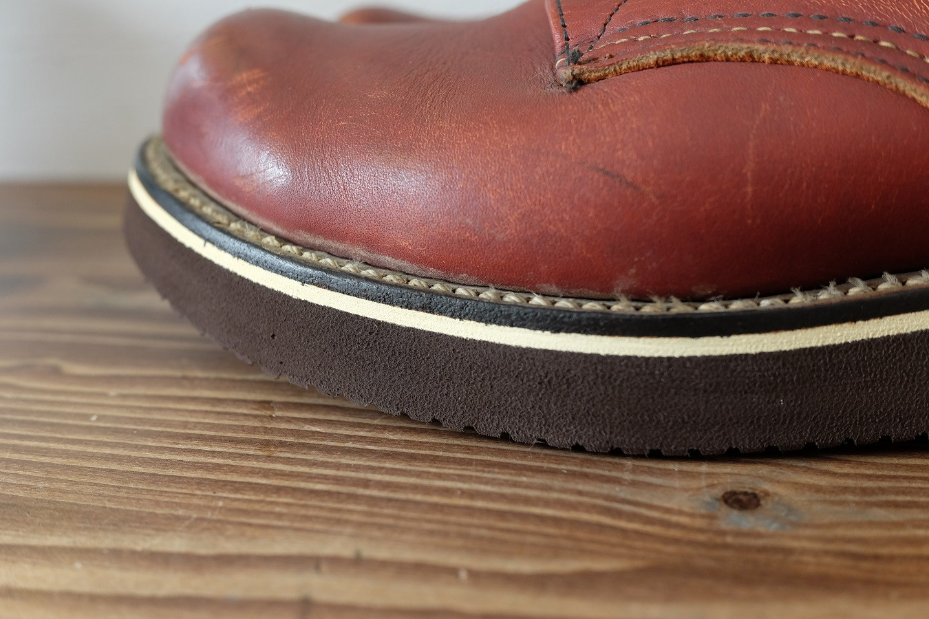 さて今回はレッドウイングの純正ホワイトソールの交換です。ホワイトソールの交換といえばビブラムの4014番が定番なのですが今回はビブラム2021ソールを使用します