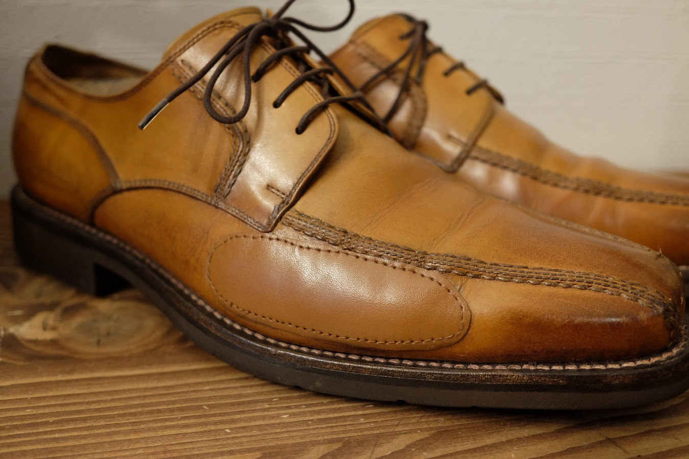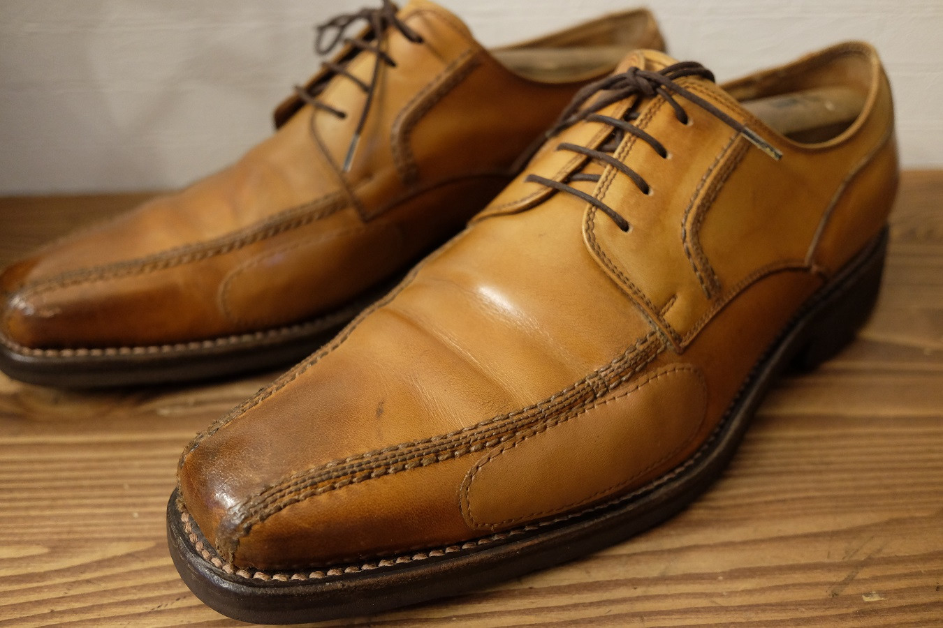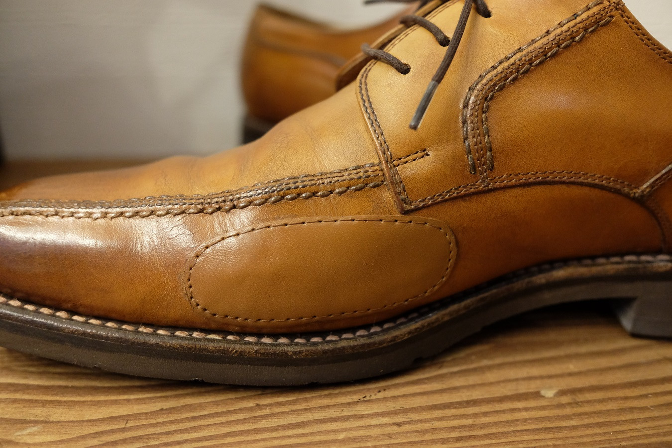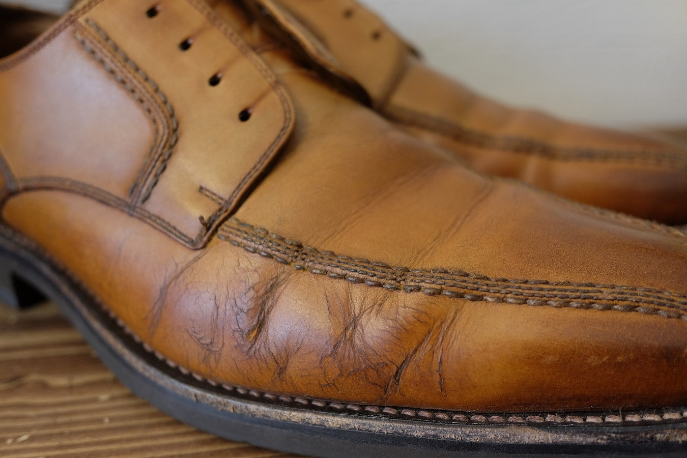 アッパーにひび割れができた箇所にレザーパッチ補修