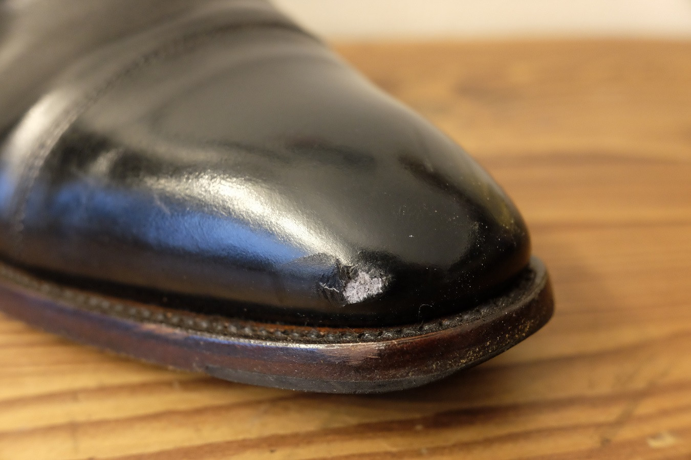 今回は紳士靴のキズ修理をご紹介いたします