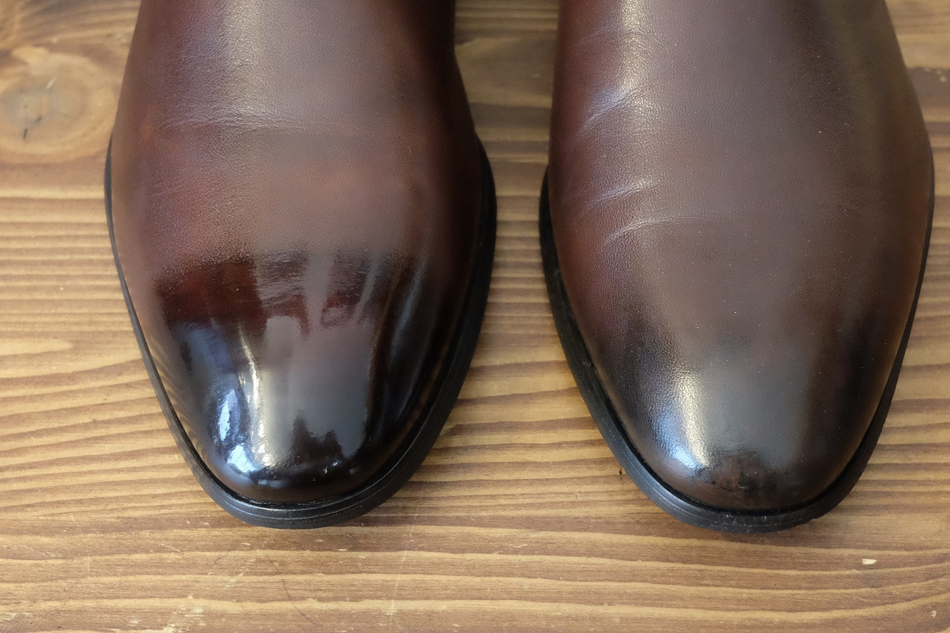靴磨き 鏡面磨き ビフォーアフター 磨き方|岡山靴修理コビット