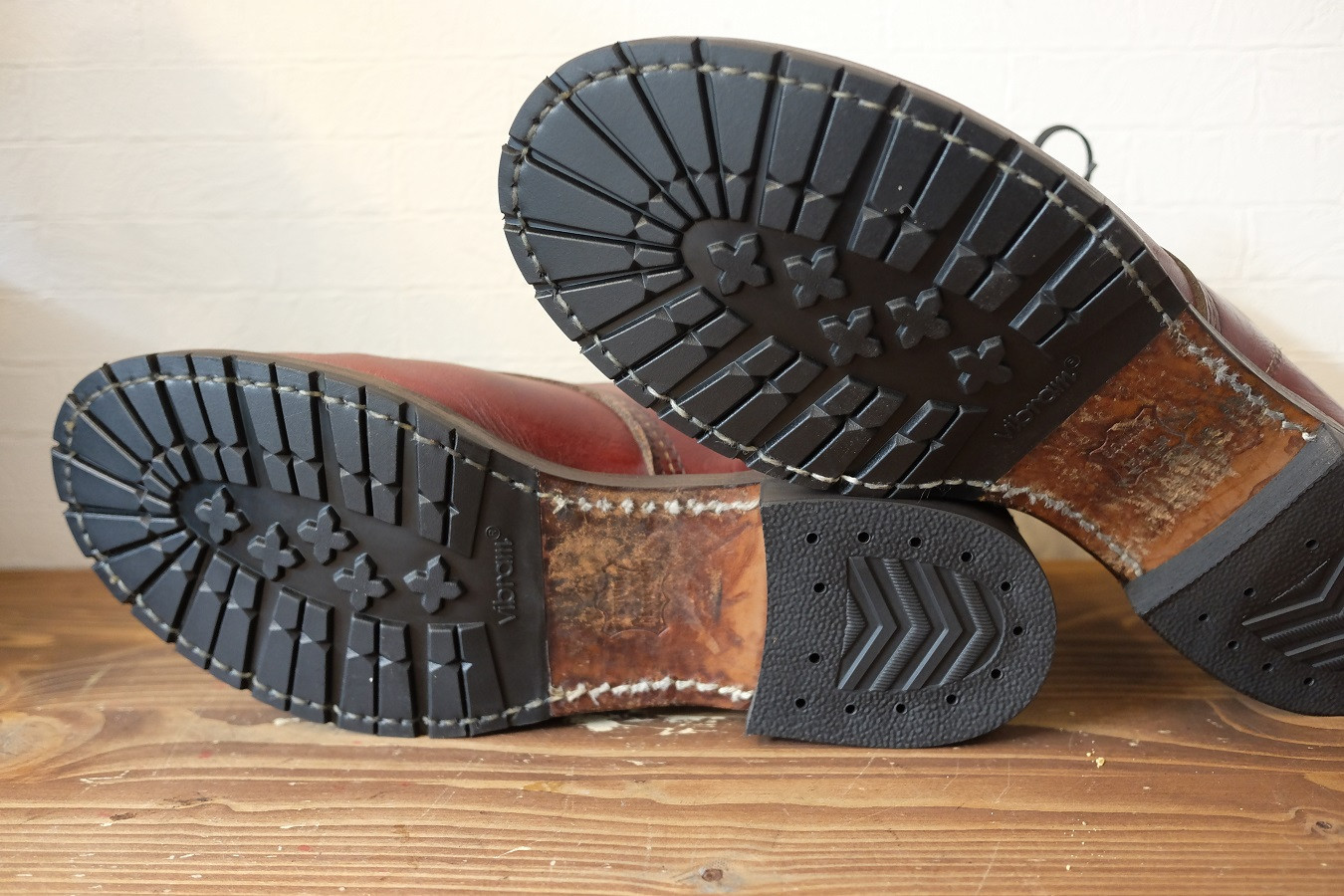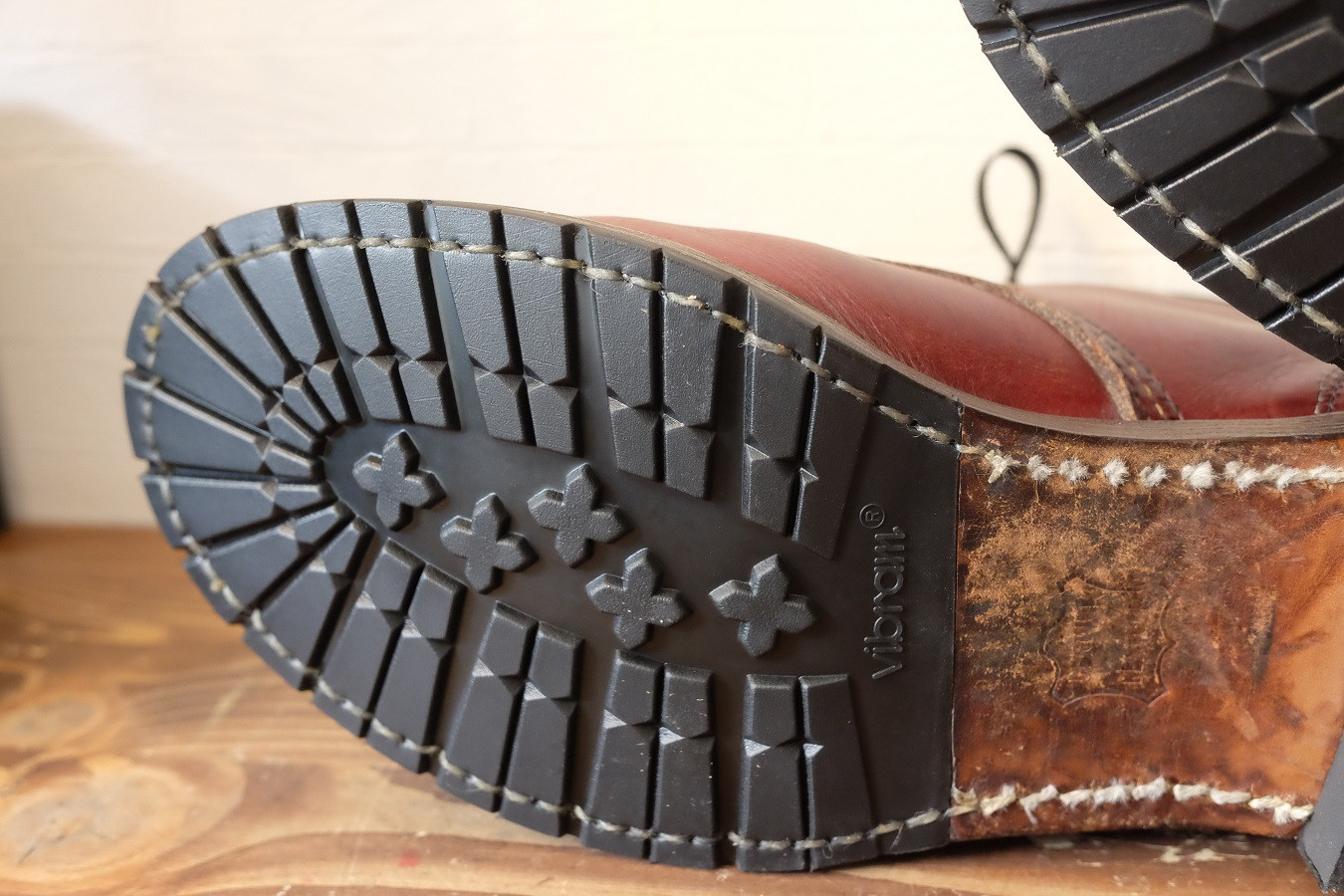 加水分解したハーフソール部分を除去しビブラム2333ソールで交換+底縫い