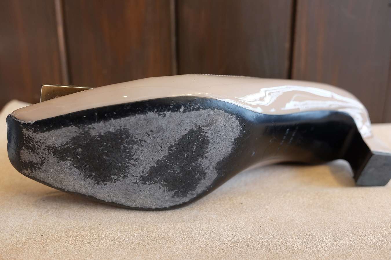 「Roger Vivier(ロジェ ヴィヴィエ)のパテントパンプスに裏張り補強」をしました。