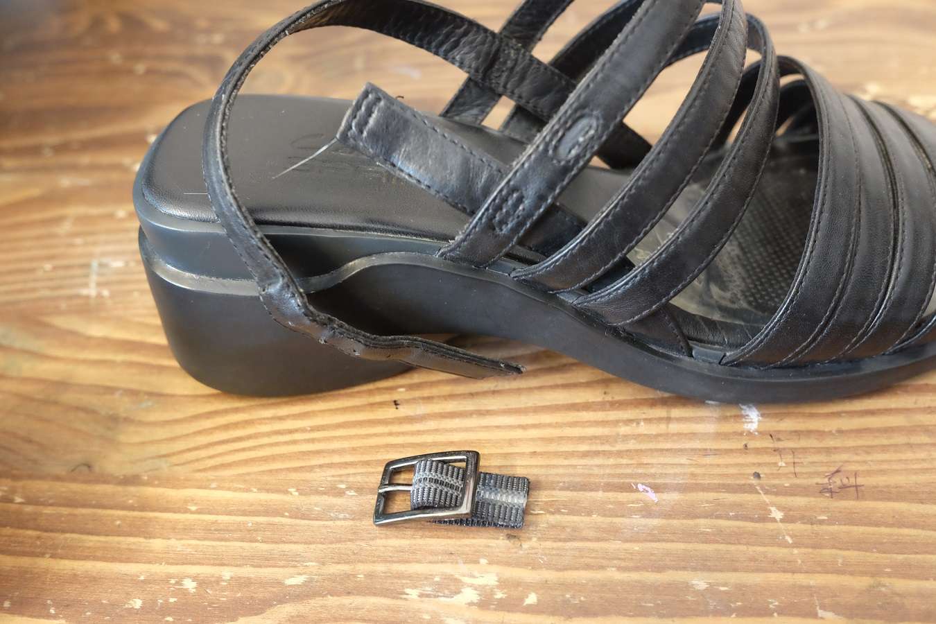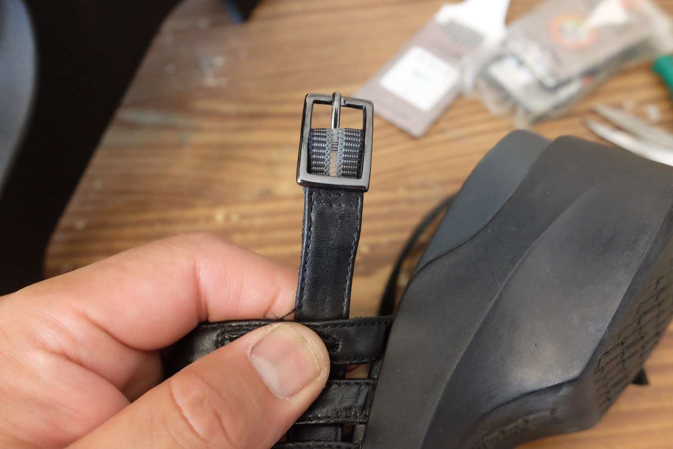婦人サンダル|ストラップ先端の伸びたゴム交換【岡山 修理工房kobbit】