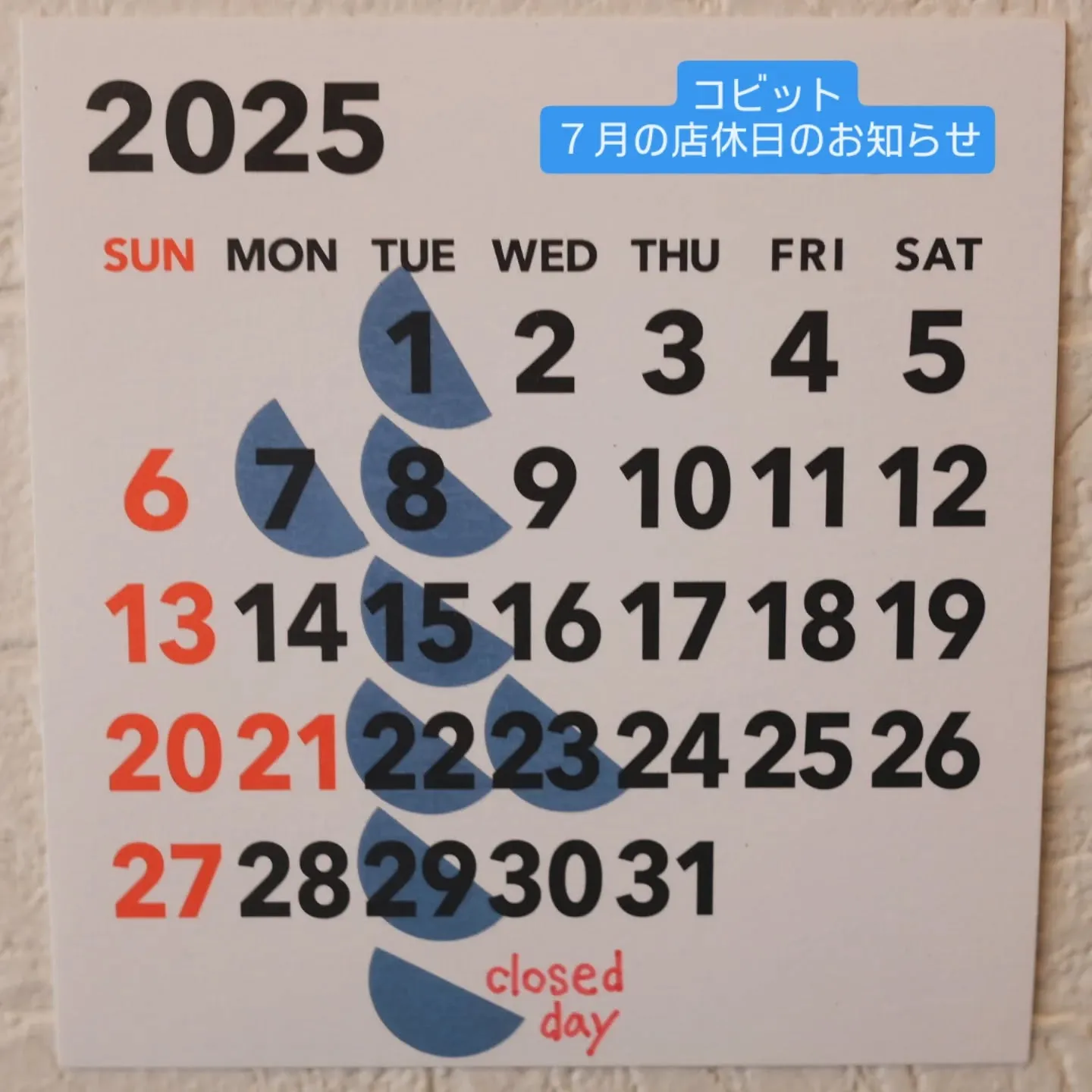【お知らせ】kobbit 7月の店休日について